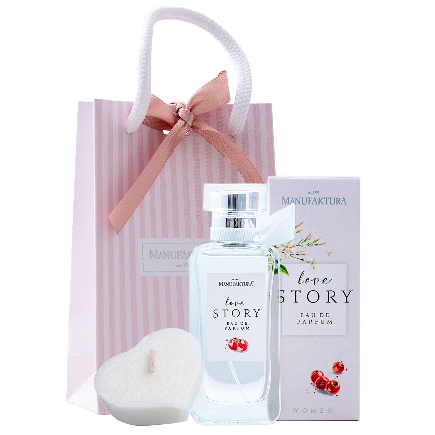 Niektoré vône rozprávajú príbeh. O blízkosti, jemnosti a chvíľach, ktoré patria len dvom. Parfumová voda Love Story je zmyselná a ženská, s harmonickou kompozíciou tónov, ktoré sa na pokožke rozvíjajú do hrejivého a elegantného záveru. Súčasťou darčekového balíčka je štýlová taštička, ktorá poteší nielen ako krásny doplnok, ale aj praktický spoločník na cesty či do kabelky. Ideálny darček na Valentína.
