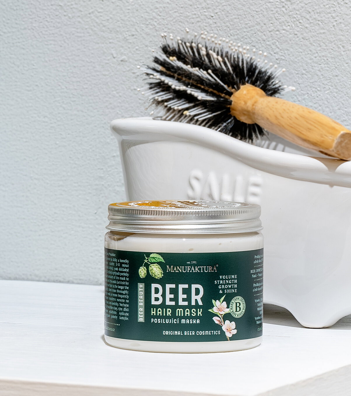 Posilňujúca vlasová maska z ikonickej Pivnej kozmetiky prináša intenzívnu starostlivosť bez silikónov v modernom poňatí BEER BEAUTY, ktorá rešpektuje aj jemné vlasy. Vďaka vyváženej kombinácii pravého českého piva, chmeľu, jačmeňa a ošetrujúcich aktívnych látok pomáha vlasom získať pevnosť, objem a zdravý vzhľad bez zaťaženia. Vylepšená receptúra vyvinutá s odborníkmi podporuje regeneráciu vlasového vlákna, prirodzený rast vlasov a ochranu pred znečistením mestského prostredia. Vlasy sú po použití ľahšie upraviteľné, lesklejšie a pôsobia silnejším dojmom už po niekoľkých aplikáciách.