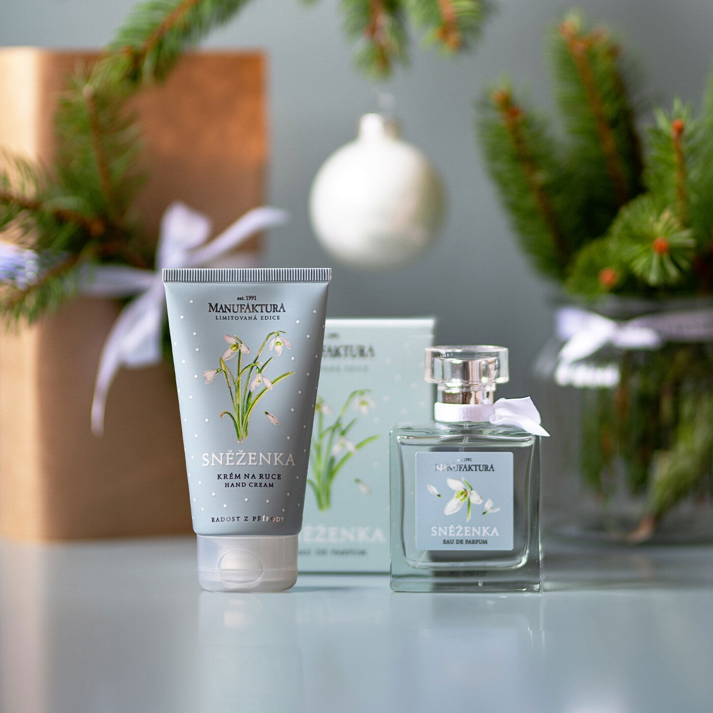 Zahaľte sa do exkluzívnej vône zimnej čistoty s limitovanou edíciou SNEŽIENKA, vytvorenou v spolupráci so Shopaholic Nicol. Luxusný vianočný darčekový set spája parfumovú vodu s očarujúcou, jemne ženskou vôňou a výživný krém na ruky. Vôňa evokuje prvé snehové vločky, pokoj zimnej krajiny a prináša pocit elegancie aj harmónie. V elegantnej bielej taštičke s jemnými – ručne maľovanými motívmi imela predstavuje tento voňavý darčekový balíček dokonalý tip na vianočný darček, ktorý poteší každú ženu s citom pre krásu.